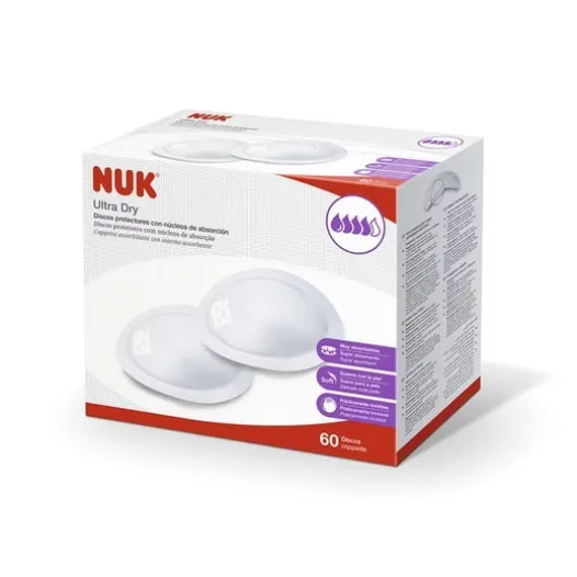 Um dies zu verhindern, bieten die Stilleinlagen von Nuk maximale Absorption und ein Fixierband, das sicherstellt, dass sie sich nicht von der Stelle bewegen. Diese Stilleinlagen schützen die Brustwarze auch vor Reibung der Kleidung.