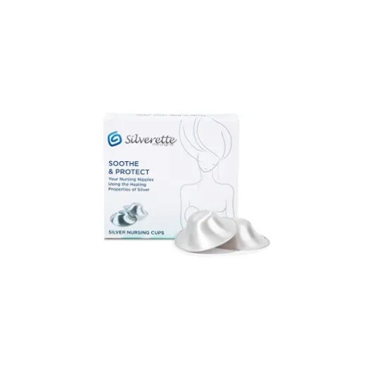 Die Silverette Brustwarzen aus Silber sind ein medizinisches Gerät der Klasse I mit CE-Kennzeichnung (Nr. 455169), bestehend aus Tassen aus 925er Sterlingsilber. Diese Tassen sind so gestaltet, dass sie die Brustwarze während des Stillens effektiv schützen, dank ihrer anatomischen Form mit abgerundetem Spitzen, die sich der Form der Brustwarze anpasst.