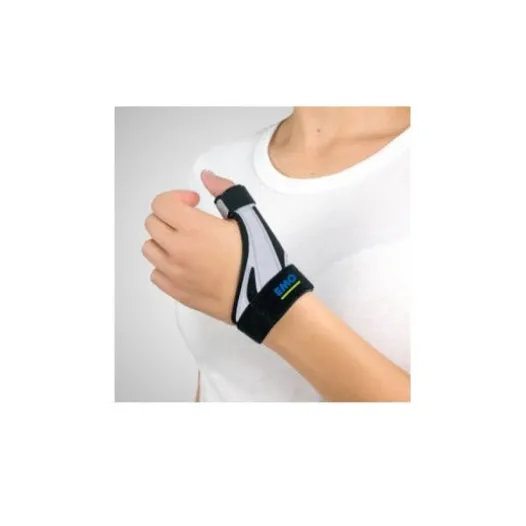 Daumenstabilisierende Orthese. Sie enthält eine verformbare Aluminium-Abduktionsschiene, die an die Morphologie des Patienten angepasst werden kann und den Daumen immobilisiert.Indiziert bei Rhizarthrose oder Trapeziometakarpalgelenksarthrose des ersten Fingers, akuten und chronischen Entzündungen des TMC-Gelenks, Tendinitis, Verletzung des ulnaren Kollateralbandes oder Skidaumen, postoperative und posttraumatische Behandlung.