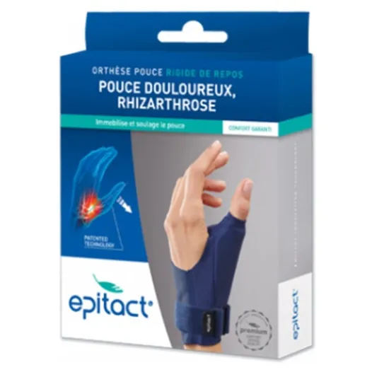 Daumenbandorthese, die die Unterstützung des Daumens bei der Ruhigstellung erleichtert. Das Modell hilft, traumatische Bewegungen abzufangen und begrenzt so schmerzhafte Entzündungsschübe, indem es den Daumen stützt, ohne ihn zu immobilisieren. Geeignet, um das Handgelenk in einer neutralen Position zu halten, um ruhige Nächte und erholsamen Schlaf zu fördern. Sie besteht aus einem bequemen, warmen, dünnen und diskreten Stoff. Waschbar bei 30° mit dem Rest der Kleidung. Größe M, rechte Hand.