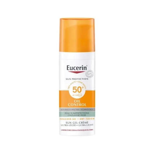 Eucerin Sun Gel-Cream Oil Control Dry Touch SPF50 50ml ist ein täglicher Gesichtssonnenschutz für fettige Haut, der hilft, die schädlichen Auswirkungen von UVA- und UVB-Strahlung zu bekämpfen.
