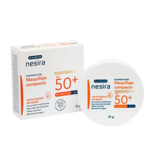 Nesira Kompakt-Make-up SPF50+ 10g ist ein Make-up, das den Hautton vereinheitlicht und Unvollkommenheiten kaschiert und ein natürliches Finish hinterlässt.