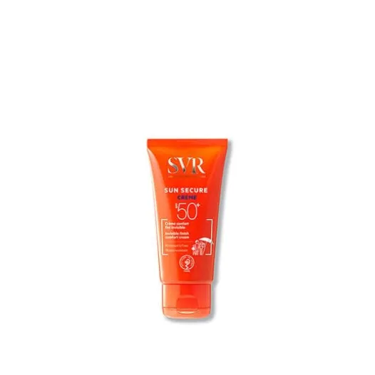 SVR Sun Secure Crème SPF50+ 50ml ist eine dermatologische Gesichtscreme mit hohem Lichtschutzfaktor (SPF 50), die die Haut vor Sonnenschäden durch UV-, UVB- und IR-Ultraviolettstrahlung schützt