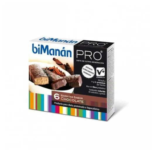 Bimanan Pro Barrita Chocolate 6 Stück sind Diätriegel mit Schokoladengeschmack, die für eine eiweißreiche Ernährung entwickelt wurden .