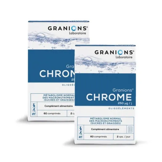 Nahrungsergänzungsmittel in Tablettenform mit natürlichem Orangengeschmack auf der Basis von Chrom, einem Spurenelement, das für den Stoffwechsel der Makronährstoffe (Kohlenhydrate und Fette) unerlässlich ist. Die jüngsten klinischen Studien belegen die Wirksamkeit von Chrom bei der Aufrechterhaltung des Blutzuckerspiegels. Chrom ist ein essentielles Spurenelement für den Stoffwechsel der Makronährstoffe (Kohlenhydrate und Fette). Es trägt zur Aufrechterhaltung eines normalen Blutzuckerspiegels bei. Präsentation 2×60 Tabletten.