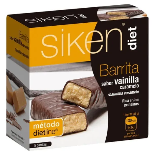 Siken Diet Barrita Sabor Vainilla 5 Einheiten ist eine Proteinnahrung, die speziell für die Zwischenmahlzeiten mit Vanillegeschmack entwickelt wurde