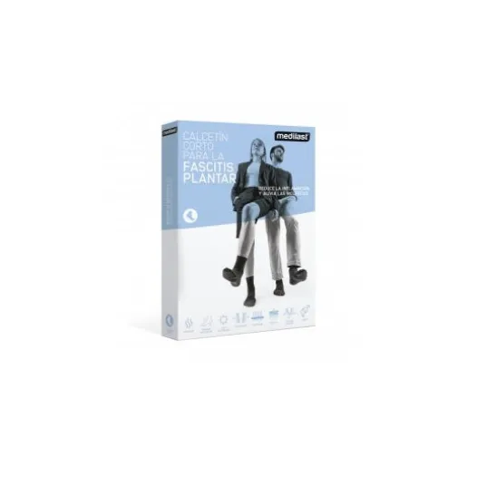 Kurze Socken, geeignet zur Linderung der Beschwerden im Zusammenhang mit Fasziitis in der Fußsohle. Farbe Schwarz, Grö…