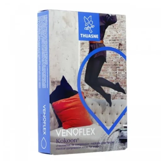Thuasne Venoflex 2 Strümpfe Kokoon Mille Schwarz N1 1 Paar Kompressionsstrümpfe üben vom Knöchel bis zum Oberschenkel einen abnehmenden Druck aus, um den venösen Rückfluss anzuregen und den ganzen Tag über Komfort zu gewährleisten. Sie begrenzen auch das Risiko von Krampfadern und Venenthrombosen. Sie können präventiv oder kurativ eingesetzt werden. Dieses Kompressionsstrumpfmodell ist sehr bequem, weich und für Frauen bestimmt. sie wurden entwickelt, um ein leichtes anziehen auf fuß- und beinhöhe zu ermöglichen. außerdem sind sie am fußballen und an den zehen verstärkt. geeignet bei krampfadern, schweren beinen, venösen ödemen, phlebologischen chirurgischen und verödungstherapiesuiten, venenleiden in der schwangerschaft und zur vorbeugung von venenthrombosen bei langen reisen. in schwarz.