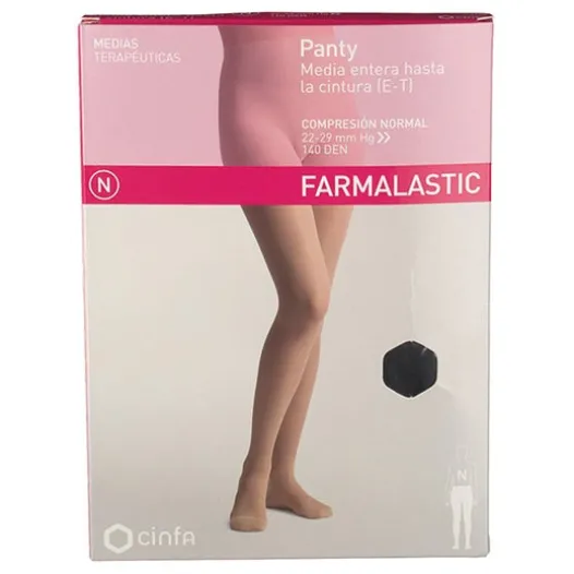 Farmalastic Panty T-Media Normal Compression Black ist eine normale Kompressionsstrumpfhose, die bis zur Taille reicht. Diese Strümpfe helfen, Durchblutungsstörungen, Krampfadern, Schwellungen zu verbessern und sind ideal für diejenigen, die für längere Zeit stehen bleiben. Die mittlere Größe entspricht einem ungefähren Umfang von: 34-36 cm an der Wade und 22-23 cm am Knöchel. *Aus hygienischen Gründen akzeptieren wir keine Rückgabe oder Umtausch.