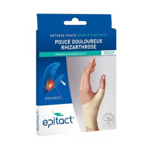 Die Epitact-Daumenorthese mit Rhizarthrose für die rechte Hand lindert Gelenkschmerzen im Daumen und ermöglicht es dem Träger, alle Aktivitäten des täglichen Lebens auszuführen. Sie öffnet die Kommissur, um den Daumen in Ruhe zu halten. Die Orthese speichert lokale Wärme für eine schmerzlindernde Wirkung.