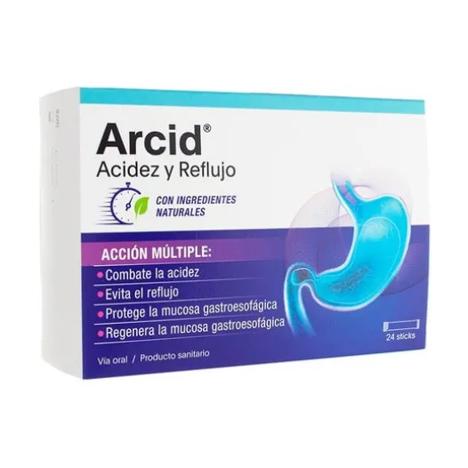 Komplex, der zur Unterstützung der Behandlung von Symptomen im Zusammenhang mit gastroösophagealem Reflux wie Sodbrennen, Brennen, saures Aufstoßen, Ösophagitis, Magenschmerzen, Brustschmerzen und trockenem Husten angezeigt ist. Seine Formulierung trägt dazu bei, eine physikalische Barriere zu bilden, die verhindert, dass Mageninhalt in die Speiseröhre gelangt, und beugt Reflux vor. Es hilft auch, die Übersäuerung des Magens zu reduzieren und einen Schleimfilm zu bilden, der das Gewebe schützt.