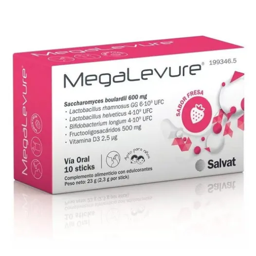 MegaLevure Strawberry Flavour 10 Einheiten ist ein Nahrungsergänzungsmittel auf der Basis von Probiotika und Präbiotika sowie Vitamin D, das dazu beiträgt, die Darmflora bei Blähungen, Verstopfung oder Durchfall wieder ins Gleichgewicht zu bringen und die Abwehrkräfte des Körpers zu stärken.