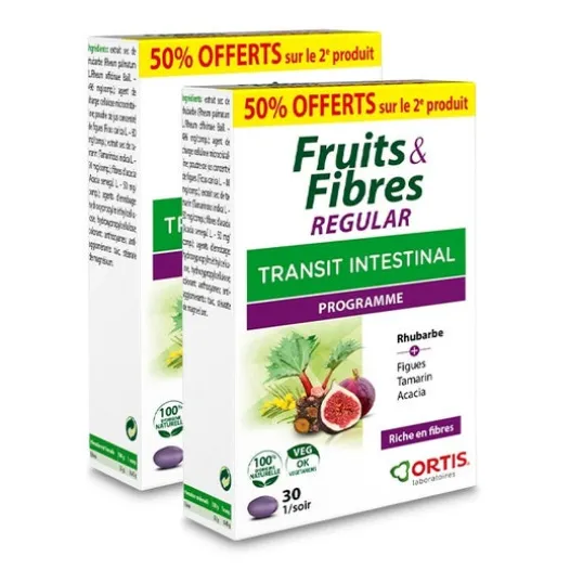 Ortis Fruits&Fibres Regular Intestinal Transit 2×30 Tabletten ist ein ballaststoffreiches Nahrungsergänzungsmittel zur Wiederherstellung der Darmtätigkeit.Rhabarber, Tamarinde, Feige und Akazie tragen dank eines optimalen Gleichgewichts zwischen Flüssigkeitszufuhr und Stimulation zur Regulierung der Darmtätigkeit bei.Für Vegetarier geeignet.Nicht für schwangere oder stillende Frauen empfohlen.Macht nicht süchtig, keine Nebenwirkungen.2er-Pack.Duo-Format.Ballaststoffreiche Nahrungsergänzungsmittel zur Wiederherstellung der Darmtätigkeit. Für Vegetarier geeignet.Nicht für schwangere oder stillende Frauen empfohlen.Macht nicht süchtig, hat keine Nebenwirkungen.2er-Pack.Nahrungsergänzungsmittel sollten niemals eine gesunde, abwechslungsreiche und ausgewogene Ernährung und eine gesunde Lebensweise ersetzen.