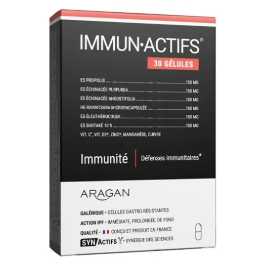 Immunactifs von Synactifs ist ein Nahrungsergänzungsmittel, das zur normalen Funktion und Erhaltung des Immunsystems beiträgt (Vitamin C, D3, Kupfer, Zink). Es trägt zum Schutz der Zellen vor oxidativem Stress bei (Vitamin C, Mangan, Kupfer, Zink).