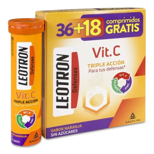Leotron Vitamin C Orange 36comp + 18comp ist ein Nahrungsergänzungsmittel mit Orangengeschmack, das zur Stärkung der Abwehrkräfte und des Immunsystems beiträgt