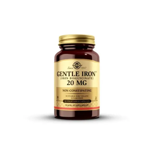 Solgar Iron Gentle 20mg Iron Bisglycinate 90vcaps ist ein veganes Nahrungsergänzungsmittel mit einer hoch resorbierbaren Form von Eisenbisglycinat , die Magen-Darm-Beschwerden minimiert.