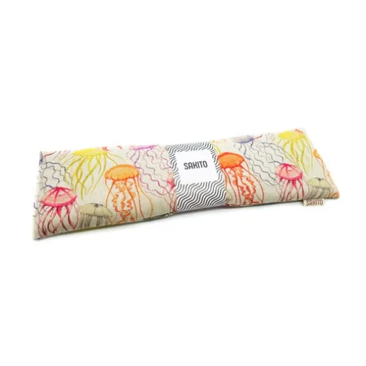 Heizkissen mit Quallenmuster, gefüllt mit Lavendel und Weizensamen. Trägt zur Entlastung von Muskeln und Gelenken bei, dank der kontrollierten Verteilung von Wärme und Kälte. Es misst 42x13cm. Geeignet für den Halswirbelbereich bei Erwachsenen.