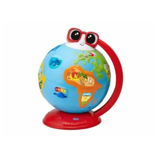 Spielzeug für Babys ab 24 Monaten in Form einer Weltkugel, das zur Unterhaltung und Belustigung von Babys beiträgt. Das Gerät verfügt über verschiedene Melodien und Funktionen, mit Geräuschen und Farben, die das Kind visuell und auditiv stimulieren. Der Zugriff auf die Funktionen des Produkts erfolgt über mehrere Schaltflächen, die mehrere Aspekte verschiedener Regionen der Welt zeigen, wie z. B. Fauna, Lebensmittel, Landschaften und Denkmäler.