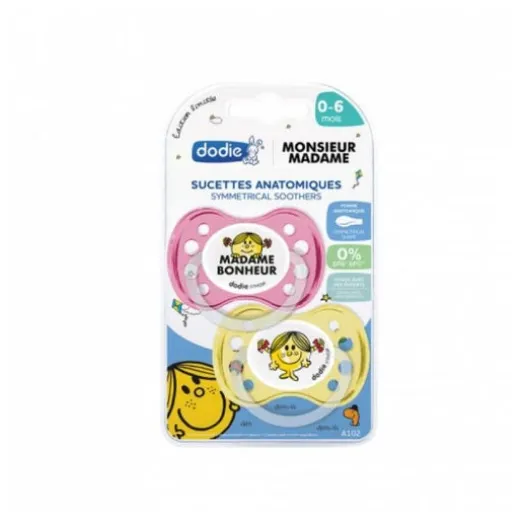 Dodie Anatomischer Schnuller 0-6M Madam Bonheur 2 Stück. *Die Farbe und das Design des Produkts können je nach Verfügbarkeit variieren.