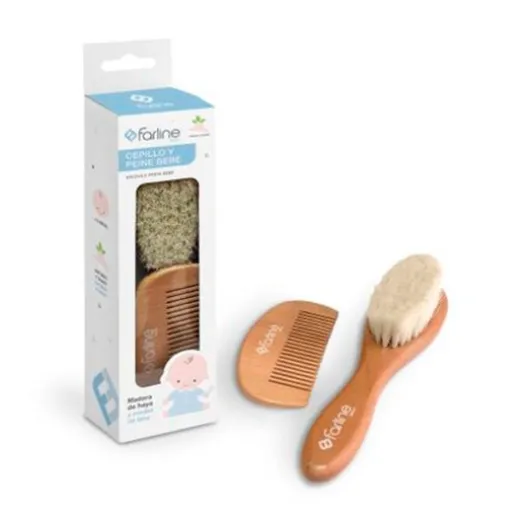 Körperpflegepaket für Säuglinge mit 1 Wollborstenbürste mit Buchenholzgriff und 1 halbkreisförmiger Buchenkamm. Sie helfen, das Haar des Babys sauber und ordentlich zu halten, ohne die Kopfhaut zu beschädigen. Sie sind für die empfindliche und zerbrechliche Haut der Kleinen konzipiert und können dank ihrer kompakten Größe bequem in der Handtasche mitgeführt werden.