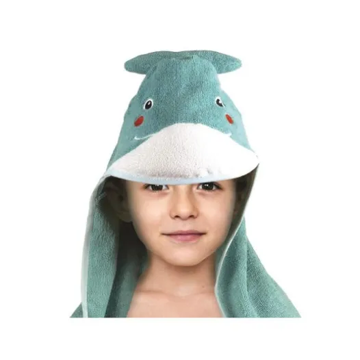 Handtuch in Kapuzenmantelform speziell für Kinder entworfen, mit kindlichen Motiven von Einhörnern, Haien und Prinzessinnen und in verschiedenen Farben. Hergestellt aus Mikrofaser, einem superabsorbierenden Material, perfekt zum Trocknen des Körpers und der Haare und zur Vermeidung von Grippe und Erkältungen.