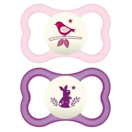 Mam Air Nacht Silikon Schnuller 16+ Rosa 2 Stück. *Die Farbe und das Design des Produkts können je nach Verfügbarkeit variieren.